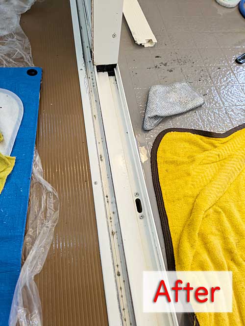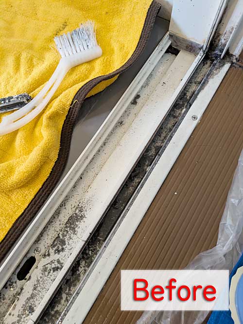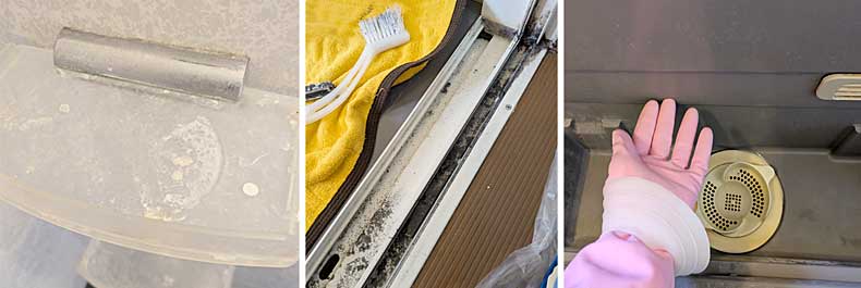 ドア下の排水部分を開けてみると、内部には詰まりとカビ汚れがしっかりと溜まっている状態でした。