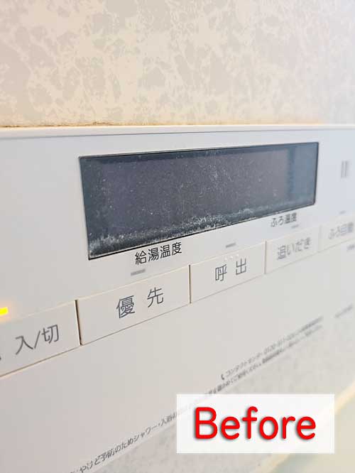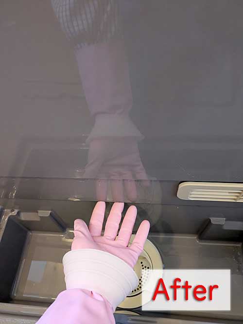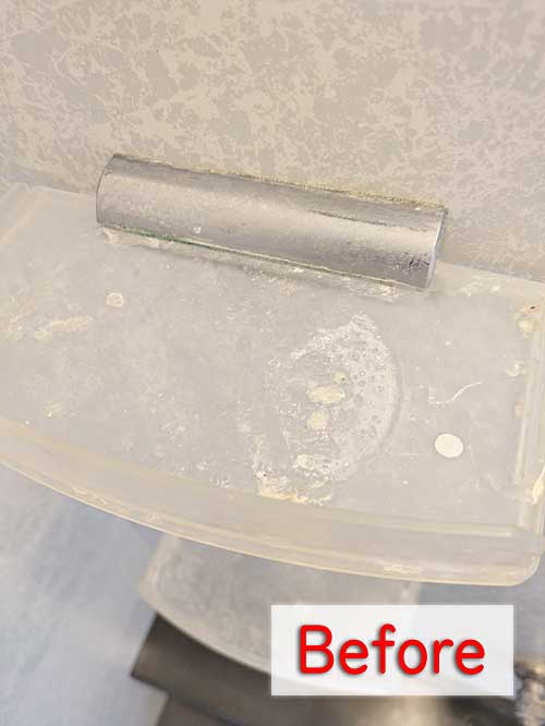 ── 蓄積していた石鹸カスとカルシウム汚れ。